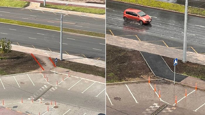 Часть тротуара сделали не из плитки, а из асфальтобетона.