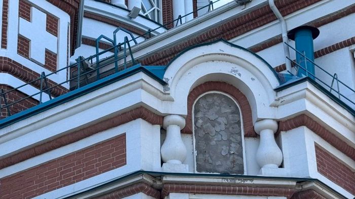 По данным очевидцев, сделали это рабочие, которые подъехали с автовышкой и сняли иконы с верхней части храма. На данный момент территория вокруг собора перекопана, и можно наблюдать фрагменты различного строительного мусора.