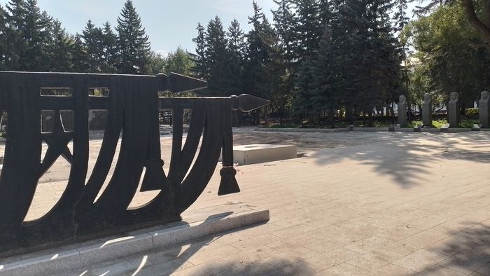 В апреле нынешнего года подрядная организация приступила к работам на территории сквера имени Борцов Революции. В рамках комплексного благоустройства обещали отремонтировать все тротуары, не простой плиткой и бордюрами, а гранитными конструкциями. К тому же планировалось привести в порядок мемориалы, облицевать гранитом подпорную стенку со стороны улицы Лермонтова, уложить рулонный газон и смонтировать систему автополива. Предполагалось обновить наружное уличное освещение, смонтировать архитектурную подсветку и установить новые скамейки. Подрядчики обещали высадить новые многолетники и кустарники, соорудить большую клумбу со стороны пр. К. Маркса.
