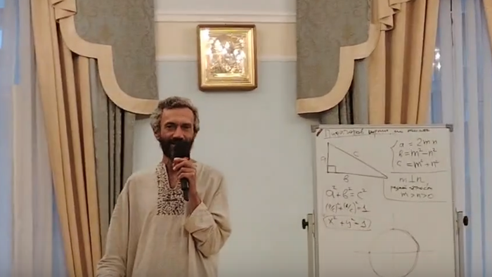 Начал он с самой знаменитой нерешенной задачи о пифагоровой комнате или пифагоровом кирпиче, упомянул о теореме Ферма, вспомнив эпизод из своей жизни. В 1993 году студент механико-математического факультета Савватеев стал свидетелем событий 3-4 октября, когда в Москве стреляли по парламенту. С сотоварищами они следили из высотки МГУ за происходящим.