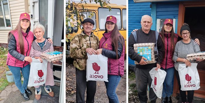 Сотрудники Азовской птицефабрики (ТМ «Азovo») по доброй традиции навещают бывших работников предприятия, чтобы выразить благодарность за их труд и поздравить с праздником.