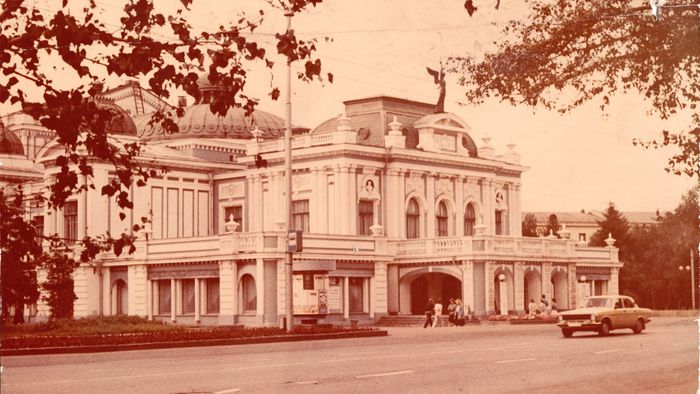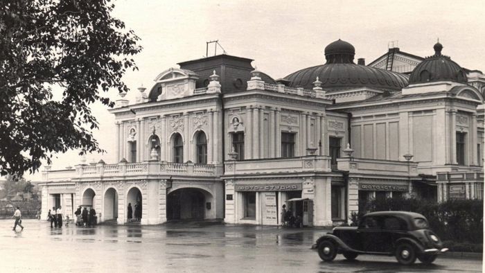 В мае 1874 года было выстроено первое деревянное здание городского театра. В нём начала работу первая профессиональная актерская труппа, и уже 5 сентября 1874 года был дан первый любительский спектакль. Здание театра просуществовало в первозданном виде недолго: уже в год открытия в нем случился пожар, а в конце 1877 года оно сгорело полностью. В конце 70-х годов XIX века в городскую думу стали поступать неоднократные предложения от частных лиц с предложениями о постройке нового театра – на этот раз каменного, поскольку деревянный театр показал свою полную безнадежность в случае пожара.