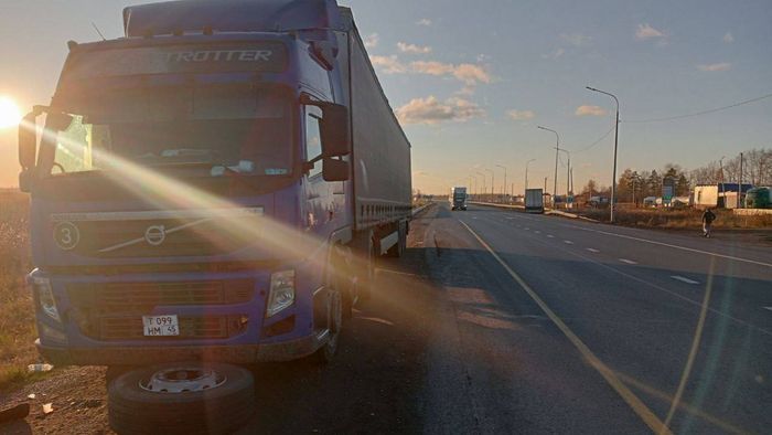 Колесо оторвалось во время движения большегруза и отлетело в мужчину.