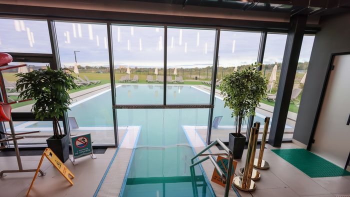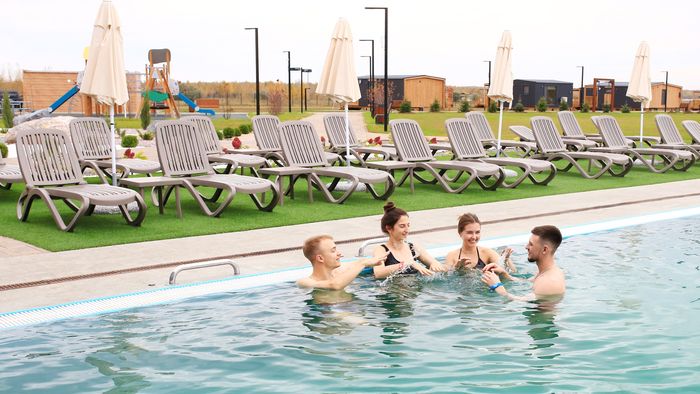 Главная особенность комплекса – бассейн с натуральной минеральной водой, которая подается напрямую из скважины. Вода сохраняет природную температуру около +32 °C, и даже зимой купание в ней превращается в особое удовольствие. Когда над водой клубится легкий пар, а вокруг лежит снег, возникает ощущение настоящей зимней сказки.