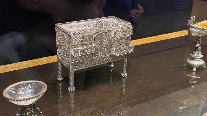 Еще одним ярким примером выступает шкатулка в виде комода, созданная методом скани из тонких серебряных проволочек. Она обладает несколькими секциями, каждая из которых предназначена для размещения небольших ювелирных украшений.