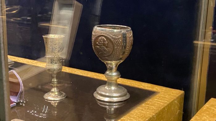 Глазов акцентировал внимание на кубке с портретами Петра I, Петра II и Анны Иоанновны, созданного в XVIII веке.