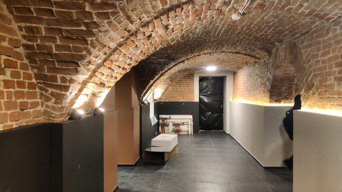 Реконструкция двух верхних этажей уже завершена, а в подвале здания восстанавливают старинную кирпичную кладку и совмещают ее с современными элементами интерьера. В этом помещении планируется разместить гардероб для сотрудников и обеденную зону. Недавно там произошла утечка отопления, из-за чего часть мебели пришлось временно убрать, а сроки завершения ремонта сдвинулись.