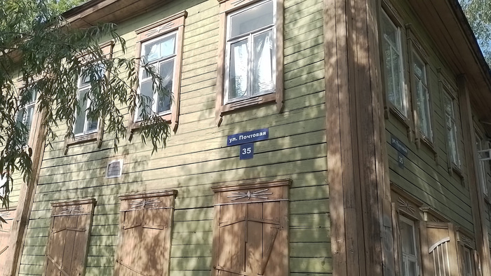 Дом № 35 – двухэтажный, квадратный (13 Х 13 м), сложен из бревен, стены зашиты тесом. Завершен шатровой кровлей. К восточной стене на всю ее высоту и ширину примыкает кирпичный объем для лестницы, сменивший, скорее всего, деревянные сени. Имеется пять оконных осей на каждом фасаде, окна прямоугольные, прикрытые ставнями на первом этаже. Наличники и ставни со стороны улицы Почтовой с накладным узором, который близок стилю модерн.