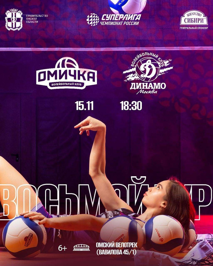 15 ноября Омский велотрек превратится в площадку большого волейбола – команда «Омичка» проведет матч чемпионата России среди клубов Суперлиги против московского «Динамо». Начало игры в 18:30 (6+).