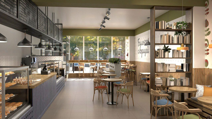 Помещение оформят в светлых тонах, с комфортными столиками, барной стойкой у окна и детским уголком. В ассортименте сети: свежая выпечка, сытные блюда, пироги, торты и сладкие десерты.