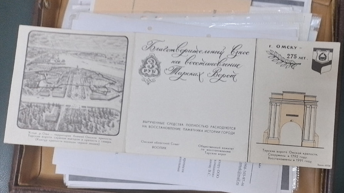 Сначала об этом заявила администрация, сооружение «Тарские ворота» в Единый государственный реестр недвижимости внесены как объект без хозяина. По истечении года такая недвижимость через суд признается муниципальной. Этому воспротивился ВООПИиК, активисты сообщества в 1991 году во главе с нынешним зампредседателя Игорем Коноваловым открыли старые фундаменты, после чего на первоначальном месте воссоздали Тарские ворота, так что это новодел, а не культурное наследие. В караульном помещении оборудовали небольшую музейную экспозицию. ВООПИиК обратилось в Арбитражный суд с иском о признании своего права собственности за объектом. Деньги на воссоздание собирали всем миром. Например, на продаже вот таких билетов.