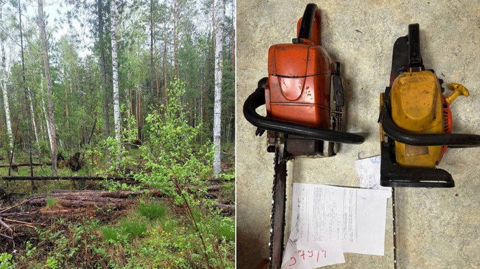 Омич орудовал бензопилами в лесу возле деревни Вознесенки с декабря 2019 года по март 2020 года. Вывозил сосны он на тракторе.