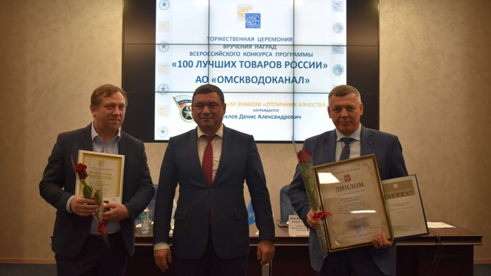 Четыре сотрудника Омского водоканала отмечены персональными наградами. Знак «Отличник качества» вручен главному инженеру Денису Хохлову. Благодарственными письмами «За личный вклад и активное участие в работе Всероссийского конкурса программы «100 лучших товаров России» награждены заместитель генерального директора по производству Сергей Голиченко, ведущий специалист отдела по подготовке производства Наталья Сафронова, обходчик водопроводно-канализационной сети отдела по подготовке производства Анна Чулкова.