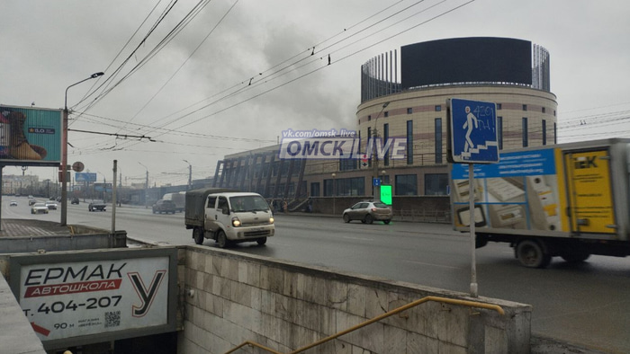 Сегодня днем улицу Гагарина в Омске заволокло дымом. Как сообщают очевидцы, это произошло в районе остановки «Дом Туриста» и торгового центра «Гагарин Молл» (бывший «Летур»).