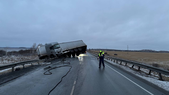 Сегодня утром, 27 ноября, на 561-м километре федеральной трассы Тюмень – Омск произошла авария с участием большегруза. Сообщение о происшествии поступило в в дежурную часть ОМВД России по Любинскому району в 07:25.