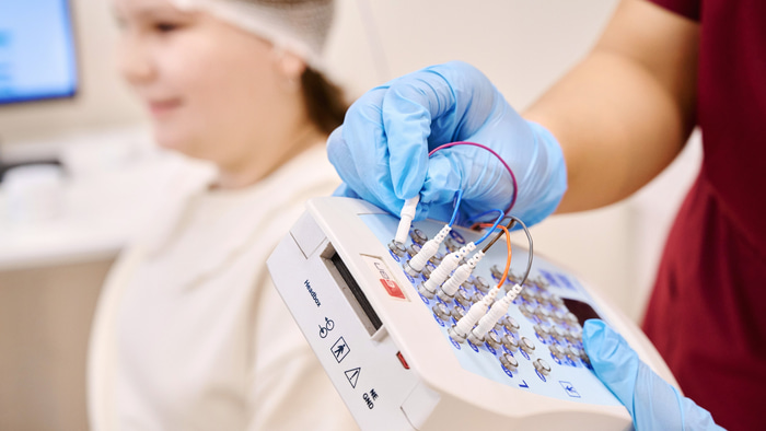 - с использованием электродной системы, которая в виде шапочки надевается на голову пациента и подключается к медицинскому оборудованию;