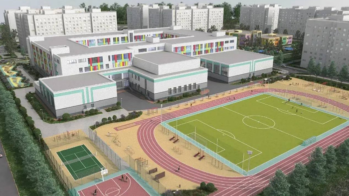 На территории образовательного учреждения разместят футбольное поле, круговую беговую дорожку, площадки для прыжков в длину, волейбола и баскетбола, а также универсальные для общефизической подготовки и физкультурно-оздоровительных занятий. Во внутреннем дворике школы появится зона для общешкольных мероприятий и места тихого отдыха.