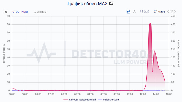 Сегодня, 8 декабря, после 12:00 по московскому времени пользователи мессенджера Max начали массово сообщать о проблемах в его работе. По данным сервиса Downdetector, в час поступает около 245 жалоб, за сутки зафиксировано более 2300 обращений.