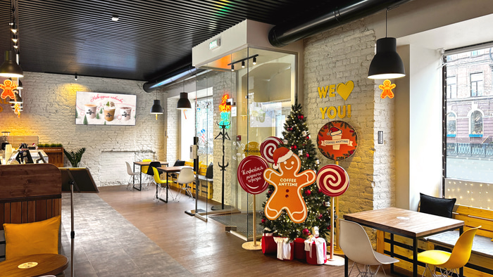 Новогодняя атмосфера в кофейне Coffee Anytime в Санкт-Петербурге