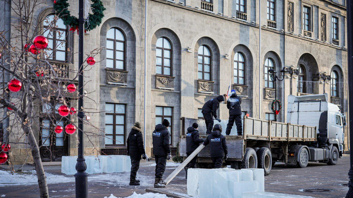 По словам Колесника, на центральной улице города уже установлены первые еловые арки и полным ходом идут работы по созданию ледяного лабиринта, зеркального куба и других праздничных фигур.
