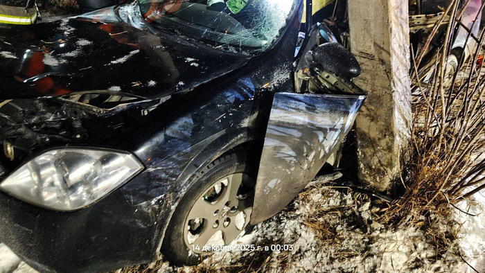 Вчера в районе 66-го километра трассы Омск – Черлак в Омском районе произошла авария. Около 22:22 Nissan Primera угодил в кювет и врезался в опору ЛЭП.