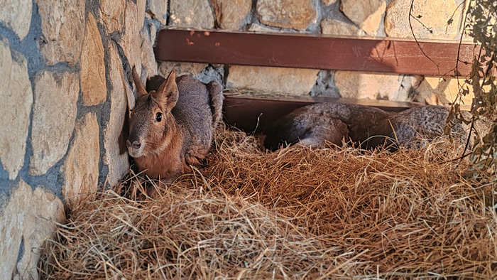– Для кошачьих лемуров, которые по совместительству являются самыми «дневными» и «наземными» животными, в павильоне были созданы вариации как верхового динамического досуга (канаты, лесенки, жердочки, веточки), так и наземного пребывания (кормовые зоны и зоны отдыха). Патагонские мары, ведущие образ жизни, напоминающий поведение зайцев и некоторых видов копытных, обеспечены территорией, укрытиями и зонами для спокойной трапезы, – рассказали об особенностях совместного проживания двух видов в зоопарке.
