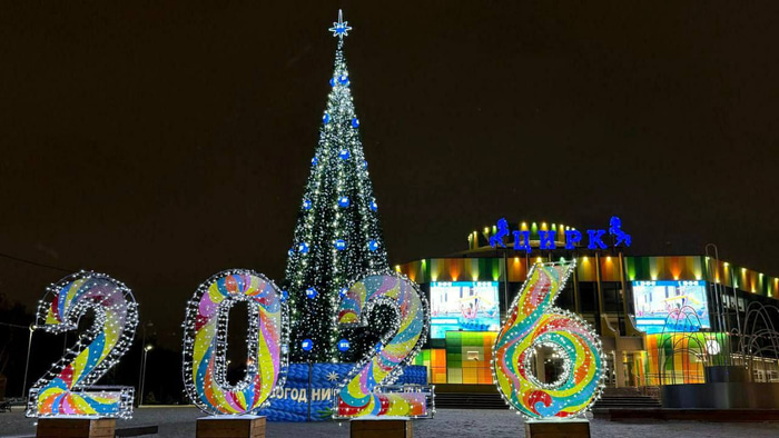 На площади у Омского государственного цирка на проспекте Карла Маркса ВТБ установил новогоднюю ель высотой 18 метров. Дерево украшено более чем пятьюстами шарами и сотнями метров гирлянд, а оформление подиума выполнено в зимней тематике с элементами вязаного декора. Елка стала заметным акцентом центральной части города в преддверии Нового года.