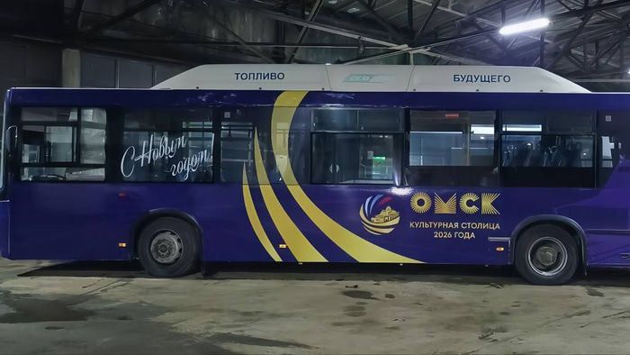 В Омске появились фиолетовые автобусы, сообщил мэр города Сергей Шелест. Два транспортных средства, брендированных в новогодней тематике и украшенных логотипом культурной столицы России-2026, вышли на маршруты № 22 и 103.