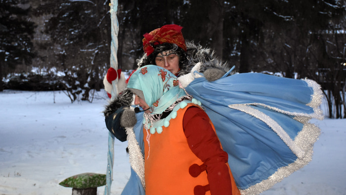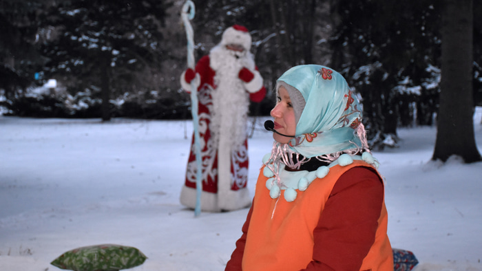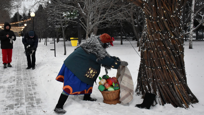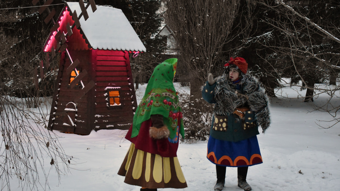 На каждой станции – у дома Настеньки, около избушки Бабы-яги, во владениях Деда Мороза, около новогодней елки – детей ожидают игры. Это и перебрасывание импровизированных поленьев, и полеты на метлах, и взбивание подушек... В общем, замерзнуть зрителям не дадут, но без перчаток все равно не обойтись – одеваться нужно по погоде, а она в Омске стоит холодная.