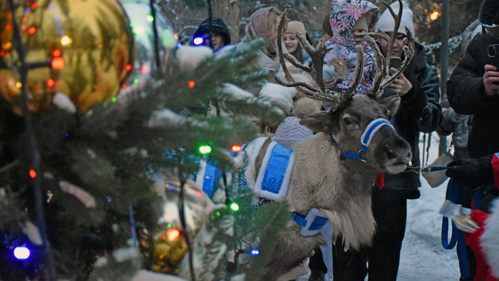 Естественно, при виде настоящего оленя многие дети просят родителей покататься в санях. Сделать это можно за отдельную плату. Также в распоряжении гостей резиденции Деда Мороза детская площадка и горка.