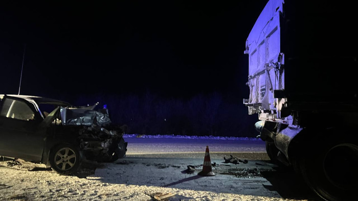 На омской трассе легковушка залетела под КамАЗ: пострадал школьник