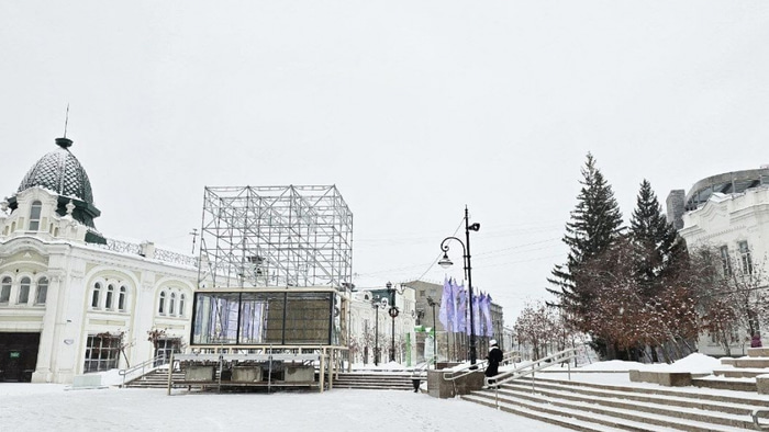 В центре Омска начали монтировать утепленную сцену для «Зимнего Любинского»