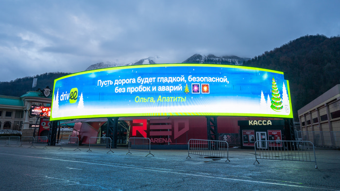Кульминацией проекта стала трансляция поздравлений на уличных экранах в Сочи – одном из главных туристических центров страны в зимний сезон. Выбор города обусловлен высокой нагрузкой на транспорт в новогодний период. Пожелания выводились на крупные медиафасады, чтобы водители могли увидеть поддержку пассажиров прямо во время работы.