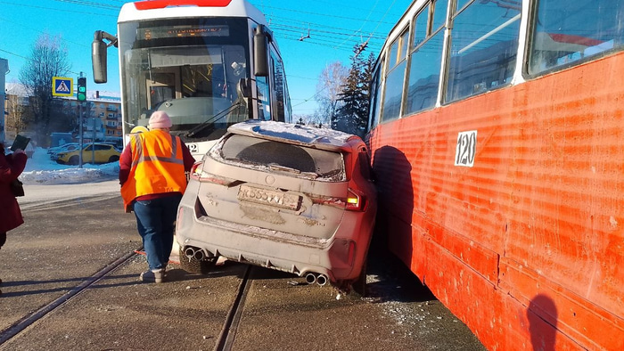 За рулем иномарки, которую зажали два трамвая на проспекте Карла Маркса в Омске, была женщина. Об этом рассказывают горожане в соцсетях.