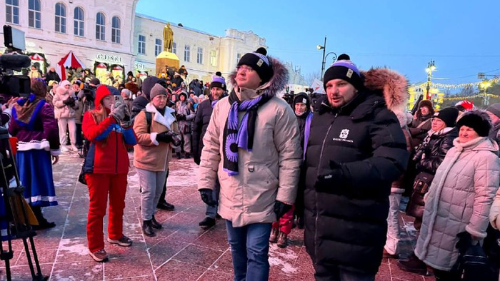 По такому случаю Любинский проспект по-новогоднему украсили, а скульптуры принарядили – Любочку в кокошник, Степаныча – в Деда Мороза. Многие омичи пришли с детьми. Не остался в стороне и губернатор Омской области, появившийся в компании супруги и младшей дочери.
