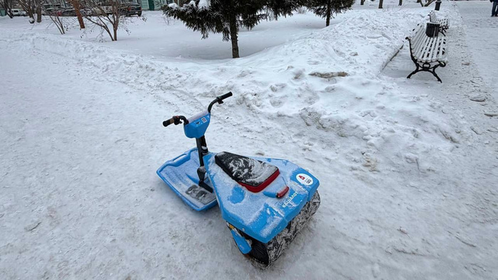 В Омске появился зимний вариант электросамокатов, их тоже можно брать напрокат. В 2026 году ездить на таких электросанях можно только по скверу Дзержинского. Принцип их работы точно такой же, как и летних.