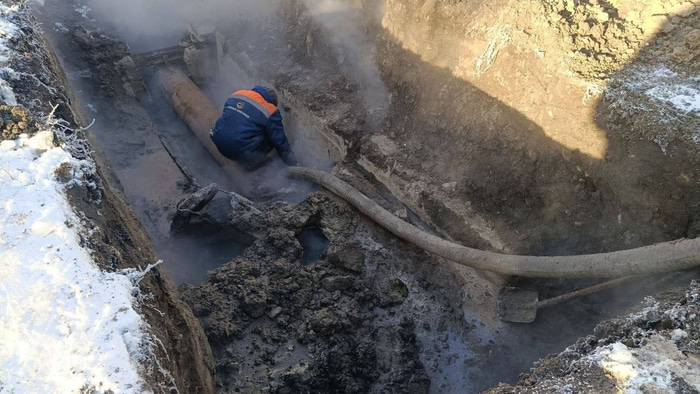 Авария на теплотрассе была устранена накануне, но прорвало в другом месте.