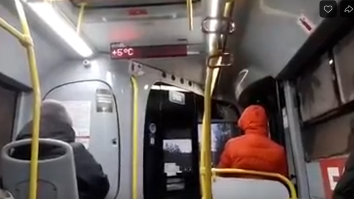 Пассажиры общественного транспорта в Омске продолжают жаловаться на холод в автобусах. Одна из читательниц «Омск-информа» прислала в редакцию фотографию из салона автобуса № 33, следующего от улицы 3-я Железнодорожная до улицы Бархатовой. Внутри автобуса всего +5 градусов.