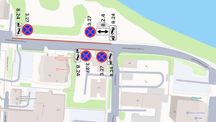 На улице Краснофлотской в центре Омска запретят парковаться. Знаки 3.27 «Остановка запрещена», дополненные табличками 8.24 «Работает эвакуатор», установят рядом с домом № 15 в обоих направлениях движения.