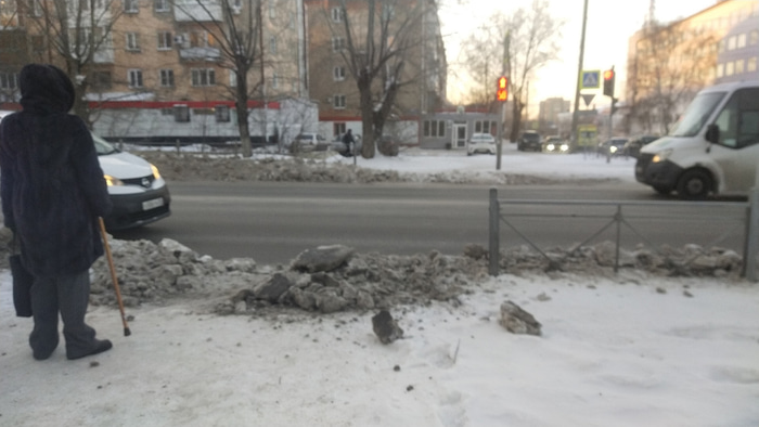 – На остановке «Областная больница», где приезжают люди с районов, дорогу по пешеходному переходу невозможно перейти. Большая куча снега, а на дороге лед. Пожилые и люди с тросточками просят помочь спуститься, – сообщают горожане.