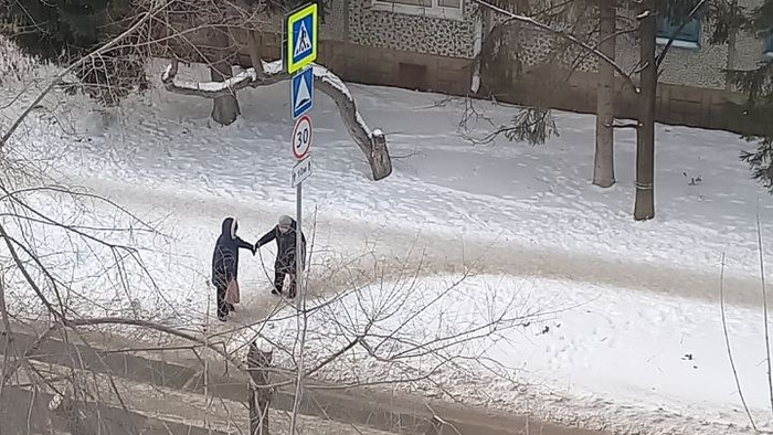 – На пешеходном переходе улицы Добровольского, д. 6/д. 5 уборка снега дорожными службами не проводится. Остались только «козьи тропки». Преодолеть не каждому удается. На фото посторонние люди помогают друг другу, – пишут омичи.