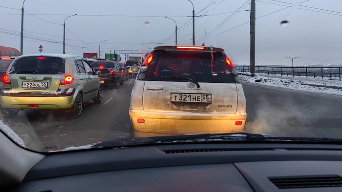 Из-за аномальных морозов Омск сковали многокилометровые пробки
