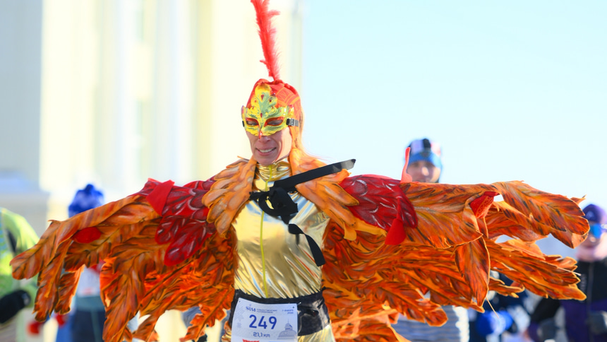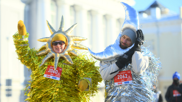 Также в полумарафоне участвовали Птица Феникс, Мэри Поппинс, Арестанты и, конечно, Снегурочка с Дедом Морозом.