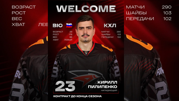 – Рады приветствовать Кирилла Пилипенко в составе «ястребов». Мы очень хотели усилить атаку именно таким игроком, который способен нанести точный бросок в финальной стадии атаки. Очевидно, что после ярких сезонов в «Северстали» ему необходим новый вызов. Уже в понедельник игрок присоединится к команде. Когда мы его увидим на льду? Решать тренерам. Думаю, стоит учитывать тот факт, что некоторое время Кирилл был без игровой практики, – заявил генеральный менеджер Алексей Сопин.