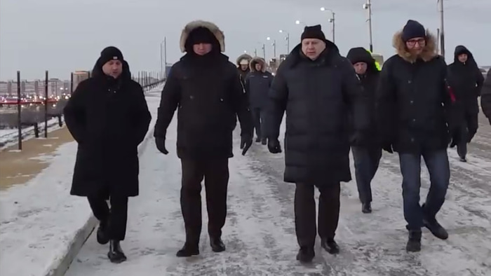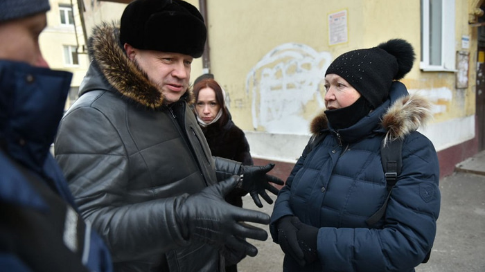 В середине января градоначальник лично проверил завершение аварийного ремонта теплотрассы на улице Рокоссовского. На фотографии его запечатлели в шапке-ушанке.