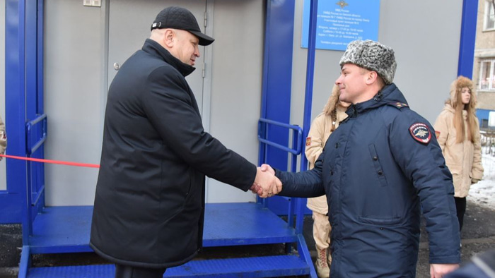 Через месяц в том же головном уборе глава города открыл новый участковый пункт полиции на улице Бородина в Советском округе.