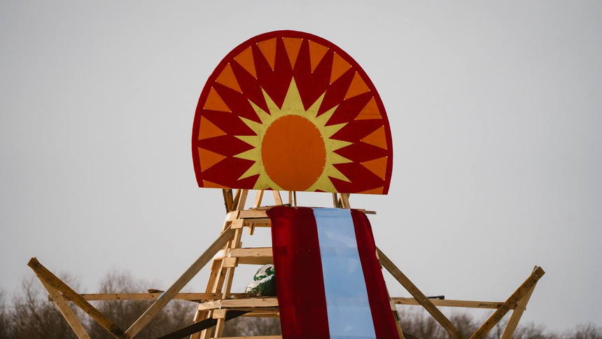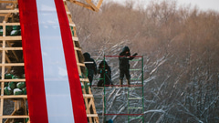 На территории парка «Зеленый остров» стартовал один из главных этапов подготовки к масштабным проводам зимы. Напомним, что символом праздника станет гигантское 16-метровое чучело, которое уже признано самым высоким в истории города. Вчера специалисты приступили к «облачению» каркаса в праздничный наряд. Специально для этого было сшито самое большое масленичное платье в Омске.