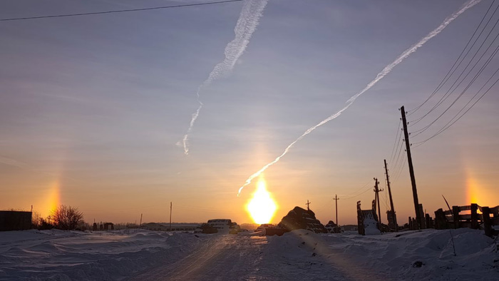 Отметим, что явление относится к разновидности гало и возникает из-за преломления света в ледяных кристаллах. Такое яркое сияние ложного солнца в Омской области можно увидеть очень редко.