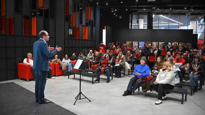 Впервые артисты Омского академического театра драмы украсили своим выступлением площадки «G-Drive Арены», открыв яркое культурное дерби. Уникальный проект собрал болельщиков команд культурных столиц 2026–2027 годов: омского «Авангарда» и челябинского «Трактора».