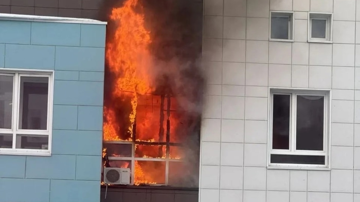 В соцсетях появились и новые кадры с места происшествия. Судя по этим кадрам, горит балкон.